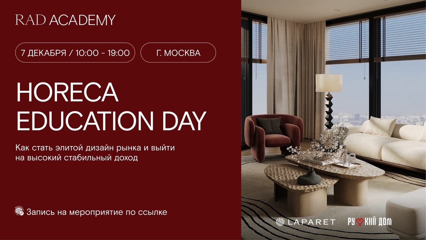 7 декабря RAD ACADEMY проведёт в Москве уникальный образовательный день по модели Гарвардского университета для дизайнеров интерьера, стремящихся выйти на новые заказы и вывести проекты HoReCa на более высокий уровень.