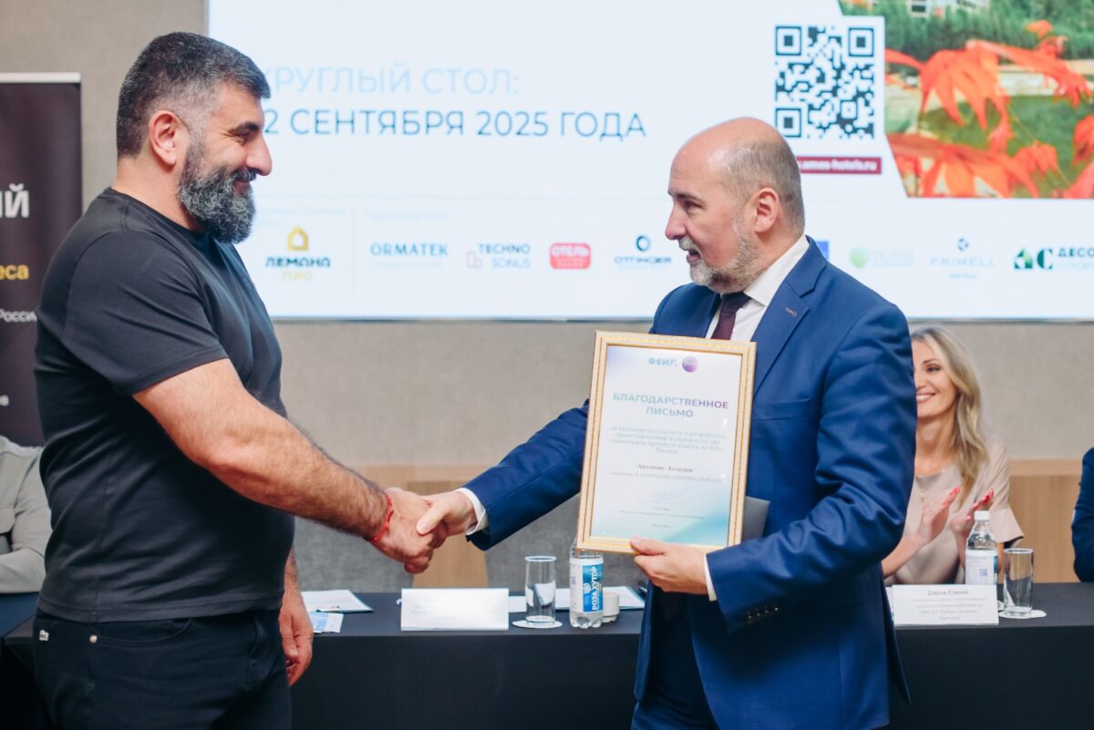 Благодарность Общенационального Союза Индустрии Гостеприимства за вклад в отрасль получили Элладий Антонов (основатель компании E. Antoniades) и Ольга Низовая (ООО «Домейн»).